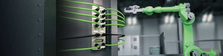 La famille Xelity représente également une solution efficace et économique pour l'intégration de systèmes de vision. Les caméras nécessaires au traitement industriel des images peuvent être intégrées rapidement et efficacement dans un système d'installation décentralisé à l'aide des commutateurs. Les câbles codés en X assurent une transmission de données fluide et sans erreur jusqu'à 1 Gbit/s entre la caméra et le commutateur.